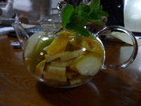季節の果物をたっぷり使って、こと事と煮立たせ、紅茶を加えてお茶に仕立てます。
