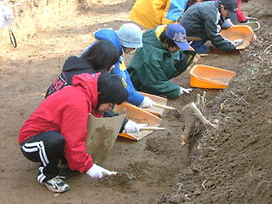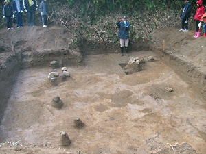 | 頴娃町は 今から450年くらい前 「伴姓頴娃氏」と呼ばれる一族が治めていました 現在の 頴娃町、開聞町、山川町、指宿市の一部まで 広い領地を治めていました 頴娃城は とても広く、その範囲は およそ17万平方メートルあると考えられます 160年のながきにわたりこの地を治め 領民の幸せを願った 頴娃氏を紹介いたします 今回は 発掘調査の模様をお伝えします 今では木や草が生い茂り、見た目にはわかりにくいですが 石垣の跡や、道の跡、土塁と呼ばれる土の壁などが残っています 今回子供達と一緒に 発掘調査の体験に行ってきました |