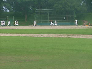 | 学校で練習する野球部員です。 |