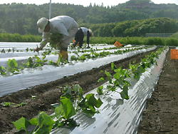 今は芋の植付けが一番。雨が降った日が最高に良いお天気です。