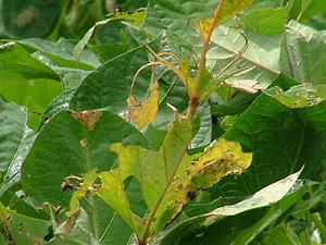 薬を撒くことにしました。葉っぱがなくなって畑が、丸坊主になってしまいました。 |