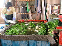 おじいちゃんが人参を掘りあげて、ばあちゃんが葉っぱを切り落とし、私がコンテナに入れていきます。