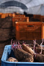 共同で保存する種芋は、保管倉庫ですやすやと眠り、芽を出していました。